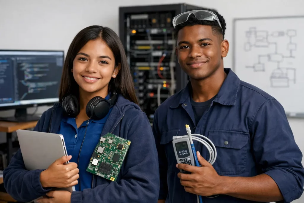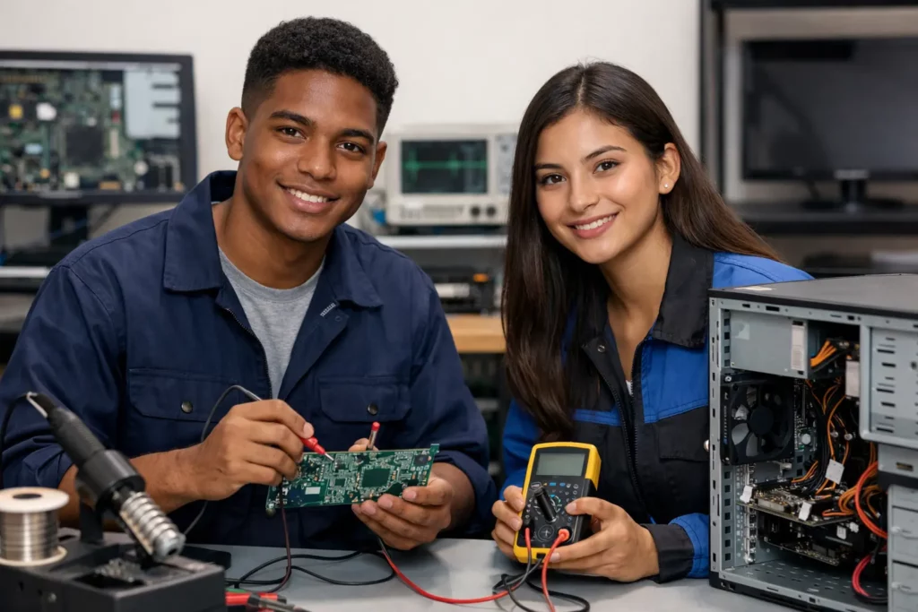 El programa de Electrónica y Mantenimiento de Computadoras proporciona a los estudiantes habilidades especializadas en el ámbito de la electrónica y la reparación de sistemas informáticos. Abarca temas esenciales como reparación de hardware, diagnóstico y solución de problemas, mantenimiento preventivo y conocimientos sobre circuitos electrónicos. Diagnostica, repara y mantiene equipos de cómputo, periféricos y dispositivos […]
